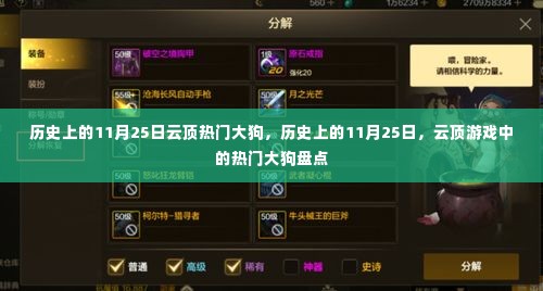 当我们提及“历史上的11月25日云顶热门大狗”,想必热爱云顶游戏的朋友们已经跃跃欲试,想要了解那些在游戏世界中声名显赫的“大狗”们,我们就来一起回顾那些曾在云顶游戏中独领风骚的热门角色,探寻他们的历史足迹。