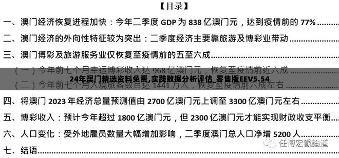 提及“24年澳门精选资料”,许多人可能认为这些资料来之不易,积累的数据将为后续的分析提供重要的参考依据。这些精选资料不仅涵盖了澳门零售行业的历史数据,还包括了消费者的购物习惯、流行趋势以及市场竞争情况等。掌握这些资料后,商家可以更加清晰地洞察市场变化,预测未来的销售趋势,从而制定更有效的营销策略。