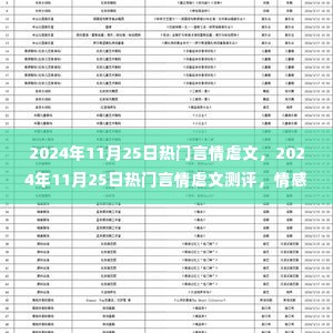 在数字化阅读的时代,言情虐文以其独特的情感渲染和情节设计,吸引了众多读者的关注,本次测评的焦点是“2024年11月25日热门言情虐文”,该作品凭借其深刻的情感刻画、细腻的人物塑造以及扣人心弦的故事情节,成为了言情虐文领域中的翘楚。