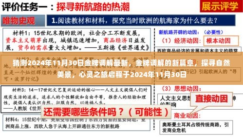 在即将到来的11月30日,金牌调解将为我们呈现一场全新的旅行体验,我们将一起走进大自然,感受自然的美丽与神秘,在这个过程中,我们将学会珍惜当下,拥抱生活,用更积极的心态去面对未来的挑战,这是一个全新的篇章,也是一个全新的开始,让我们一起踏上这次轻松愉快的旅程吧!