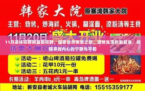 在这个金色的十一月,让我们一起踏上探索自然美景的旅程吧!远离尘嚣,发现内心的平静与安宁,退休招聘网最新发布的旅游相关职位等待着您的加入,让我们一起笑对人生新篇章,勇敢地迈出第一步!让我们共同记录美好时光,分享大自然的魅力!