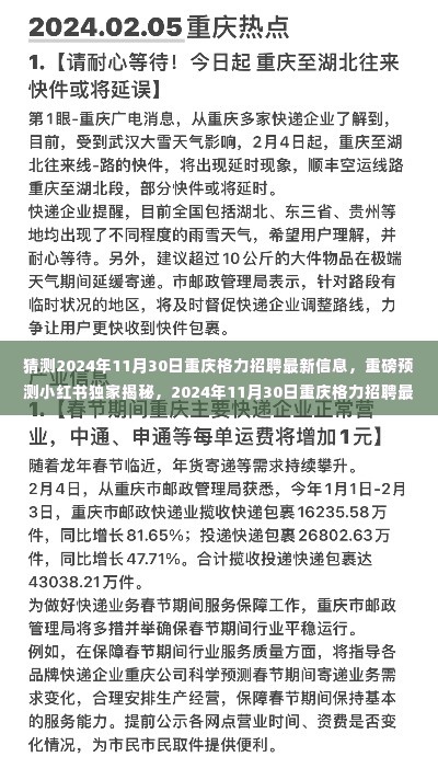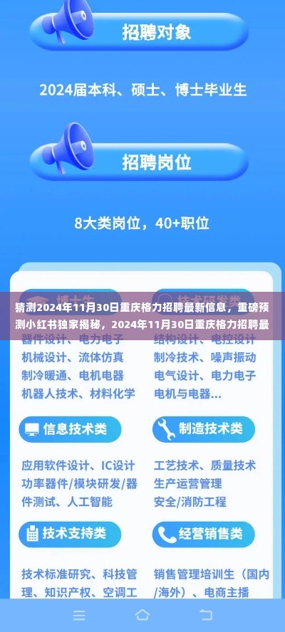 亲爱的小红书社区小伙伴们,今天我们来聊聊一个大家都非常关心的话题 —— 猜测2024年11月30日重庆格力招聘的最新信息,随着时代的进步和行业的发展,格力电器作为一家领先的家电企业,一直在寻求优秀的人才加入其团队,在未来的日子里,重庆格力会有哪些新的招聘动态呢?让我们一起来探讨和猜测吧!