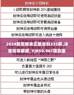 在当今这个数据驱动的时代,企业和组织面临着海量的数据和信息挑战,精准资料不仅能够帮助决策者理解当前的市场环境,还能为未来的发展提供指导。“2024新奥精准正版资料335期”的发布,为行业决策者带来了一剂强心针。