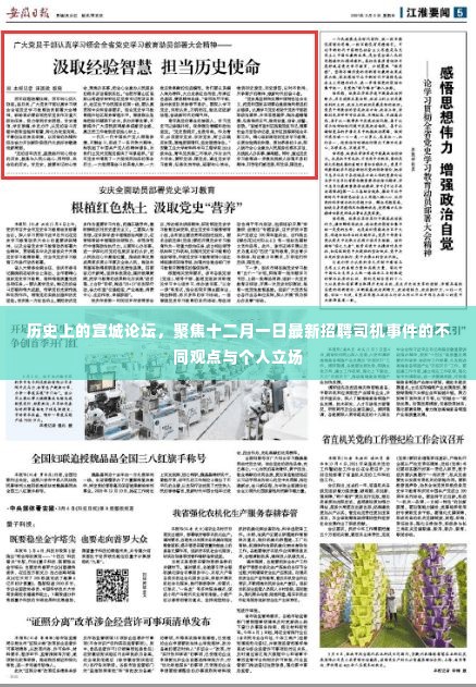 随着时代的变迁,历史的长河中涌现出无数值得纪念的日子,在宣城论坛中,每年的十二月一日,对于许多求职者而言,似乎承载了特别的含义,本文将聚焦于宣城论坛在十二月一日的最新招聘司机事件,通过正反双方观点的剖析,探讨其背后的深层意义,并阐述个人的立场与理由。