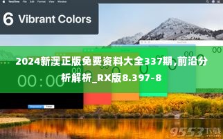 2024新澳正版免费资料大全337期,集结了各领域的最新研究成果、政策变化以及市场趋势,这个系列从多个维度提供独到见解和有价值的资源,无论学术研究者、业界分析师,还是普通民众,都能在此找到所需的前沿分析解析。《前沿分析解析_RX版8.397-8》作为标志性版本,其内容和形式的创新尤为引人注目,提供的资料全方位覆盖了全球视角下的新澳变化。