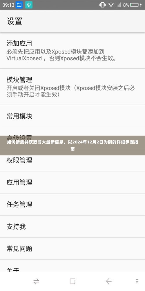 概述:本指南旨在帮助读者了解如何猜测并获取哥大(哥伦比亚大学)在特定日期如2024年12月2日的最新信息,我们将从了解哥大的基本信息开始,逐步介绍如何通过校园公告、社交媒体、新闻报道等途径获取最新资讯,并教授如何分析和解读这些信息,本指南简单易懂,适合各类读者阅读。