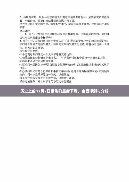 随着数字技术的不断进步,各种应用软件层出不穷,历史上的12月2日采集狗”作为一款集历史信息与趣味探索于一体的应用,近期引起了广大用户的关注,本文将对该应用进行全面评测,介绍其特性、使用体验、与竞品对比以及目标用户群体分析。