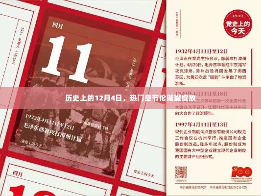 历史上的每一个日子都承载着丰富的文化内涵,而文学巨匠们为我们留下的经典作品更是人类文化的瑰宝,通过回顾历史上的12月4日,我们不难发现这一天在文学领域中的特殊意义,让我们共同传承这些璀璨夺目的文化遗产,铭记历史,感受文学的魅力,在未来的日子里,让我们继续用智慧和情感去创造更多的经典章节吧!