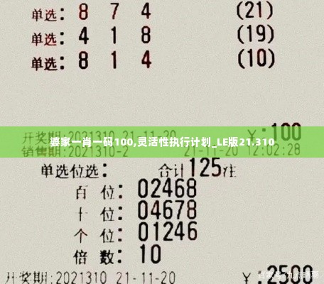 灵活性是指企业面对市场变化时能够迅速做出反应的能力,在"婆家一肖一码100"的策略中,灵活性至关重要,它涉及到计划的制定、调整和执行过程,灵活的企业能够迅速适应市场趋势,抓住商机,减少风险,并提高对客户需求的响应速度。