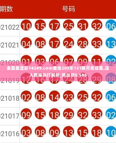 在这个数字化时代,彩票已成为许多人钟爱的娱乐方式,彩票查询和数据解析因此变得至关重要,金算盘澳彩74249.cσm平台,作为专业的彩票查询平台,为彩民提供了便捷查询服务,并特别注重数据深度解析,本文将围绕“金算盘澳彩74249.cσm查询2023年131期开奖结果,深入数据解析_挑战款5.586”这一主题,详细介绍此平台的功能、优势及挑战款5.586的相关信息。