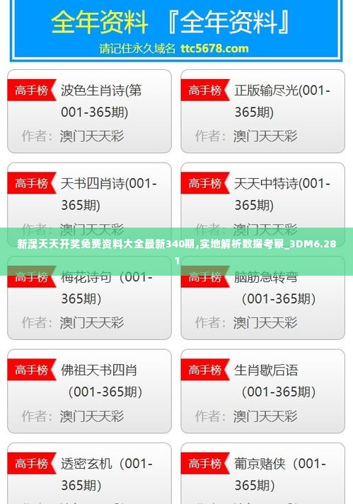 综上所述,新澳天天开奖免费资料大全最新340期和实地解析数据考察_3DM6.281是彩票爱好者们不可或缺的工具。它们为彩民提供了丰富的历史数据、精准的趋势分析和互动交流的平台。彩民们应充分利用这些资源,结合自己的实际情况,制定出适合自己的投注策略,以期在即将到来的新澳天天开奖最新340期中赢得好运。