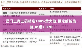 在博彩领域,精准预测是一个非常重要的技能,尤其是在澳门这样的博彩热门地。本文将深入探讨澳门三肖三码的精准预测技巧,并提供100%的黄大仙策略,以及稳定解析策略M版2.378的相关信息。