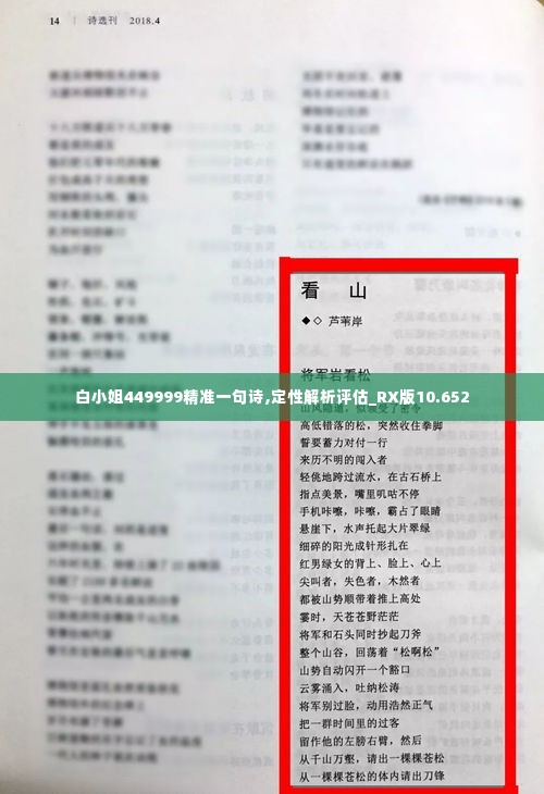 “白小姐449999精准一句诗”并不是简单的文字游戏,而是深刻艺术表达的一部分,每一次提及都是对白小姐形象的加强和深化,这首诗在某个评价体系中的得分可能是“10.652”,这意味着尽管诗歌的艺术价值难以量化,但它仍然在某些标准下获得了高分认可,这也进一步证明了白小姐形象的独特魅力和价值所在。