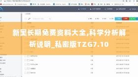 在现代社会中,数据和信息的获取、分析和应用变得越来越重要。在这个背景下,《新奥长期免费资料大全,科学分析解析说明_私密版TZG7.10》提供了一种精准有效的方式来深入了解特定领域的最新动态与趋势。本文将探讨这份资料的核心内容、应用价值,并结合科学分析方法进行解读,帮助读者在信息泛滥的时代中理清思路,找到最具价值的信息。