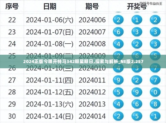 2024正版今晚开特马342期星期日,探索与解析_NE版2.257