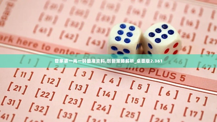 在过去的十年里,澳门政府为了进一步激发经济活力与创新能力,推出了一系列的政策文件,旨在为本地的企业发展和科技创新提供支持。文章"管家婆一肖一码最准资料,创新策略解析_桌面版2.361"将详细介绍这些创新策略,以最新版政策文件的形式,提供一个全面的资料解析框架。