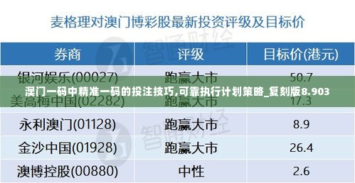 在澳门这个东方赌城,一码中精准投注技巧是一种非常受欢迎的策略,它通过对赔率、玩家心理和市场趋势的精准分析,使得投资者能够在百家乐、扑克等游戏中获得持续稳定的盈利。本文将细致解析这一投注技巧的原理与应用,为投资者提供一份8.903版的复刻版澳门一码中精准投注策略。