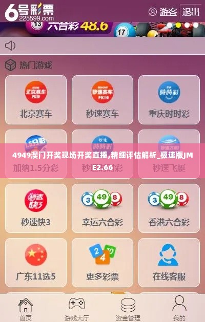 在众多在线博彩平台中,极速版JME2.66以其独特的功能和流畅的用户体验脱颖而出。首先,JME2.66提供了更为高效的开奖速度,使得用户能在最短的时间内获取结果,从而进行后续的投注分析。其次,其界面设计简洁明了,用户无需复杂的操作就能够快速上手。