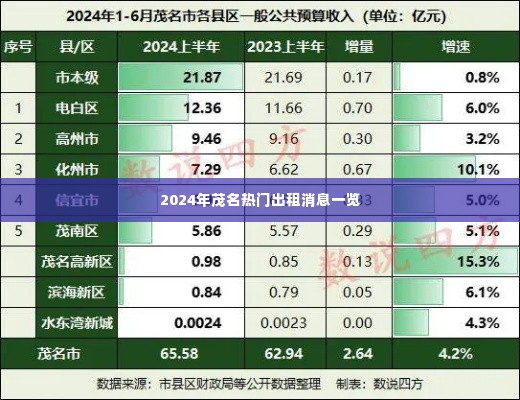 随着城市化进程的加快,租赁市场日益繁荣,2024年的茂名,作为粤西地区的重要城市,其出租市场也呈现出火热的态势,本文将为您详细介绍2024年12月9日茂名的热门出租消息,带您了解当地的租赁市场动态,为您的租房决策提供有价值的参考。