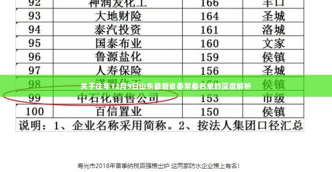 在往年12月9日,山东省委的常委名单包括了若干位优秀的领导干部,这些领导都是经过严格的选拔和考核,具有丰富的政治经验和领导能力,他们的具体名单可以在各大新闻媒体和官方网站上查询到。