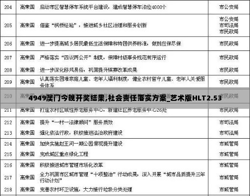 在当今社会,公众对于企业的社会责任期待越来越高,尤其是在急速发展的科技与经济背景下,社会责任的落实显得尤为重要。这在博彩行业体现得更为明显,特别是澳门这座被誉为“东南亚赌城”的城市。在此背景下,我们将以“4949澳门今晚开奖结果,社会责任落实方案_艺术版HLT2.53”为主题,探讨社会责任在博彩行业,尤其是在澳门的实际应用,以及如何通过艺术的形式进行展现和传播。