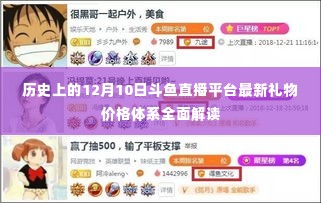 随着网络直播行业的蓬勃发展,斗鱼直播平台作为国内领军品牌之一,其礼物系统一直是用户关注的焦点,每年的不同时间段,斗鱼平台都会推出各式各样的礼物和价格体系,本文将重点聚焦于历史上的12月10日斗鱼直播平台的最新礼物价格体系,从产品特性、使用体验、与竞品对比、优缺点分析以及目标用户群体等多个角度进行全面评测介绍。