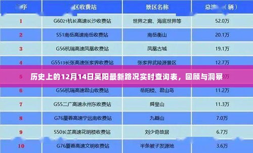 历史上的12月14日吴阳最新路况实时查询表为我们提供了丰富的信息,让我们更加深入地了解了吴阳交通的发展历程和未来展望,作为市民,我们需要关注交通状况,积极参与到交通管理中来,共同为吴阳的交通发展贡献力量,希望通过本文的探讨,能让更多市民关注路况实时查询表,共同为构建美好出行环境努力。
