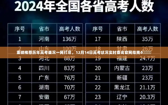 随着科技的进步,高考信息查询越来越便捷,往年高考状况实时查询官网是一个权威、专业的平台,为广大考生和家长提供最新、最全面的高考信息,你可以轻松找到关于高考的最新动态、考试数据、分数线等重要资讯,特别是每年的12月14日,这个网站会实时更新考试状况,让你随时掌握考试进展。