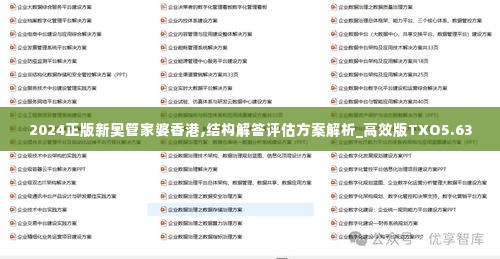 在快速变化的商业环境中,传统的管理模式与决策方法已无法满足企业的需求。2024年,正版新奥管家婆香港(New Aojing Guanchang Hongkong)推出了一套全新的结构解答评估方案——高效版TXO5.63,旨在帮助企业提高管理效率与决策科学性。本文将深入探讨这一评估方案的核心内容及其应用价值,为各类企业提供有效的解决方案。