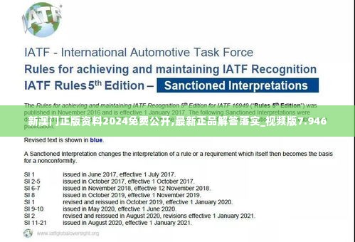 视频版7.946是新澳门正版资料2024免费公开项目的一部分,特别针对网络时代和数字化传播的特点,将政策文件和解答以视频的形式呈现给公众,以下是视频版7.946的几个主要特点: