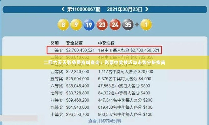 转载请注明来自天津锦麟商贸有限公司,本文标题:《二四六天天彩免费资料查询:彩票中奖技巧与走势分析指南》