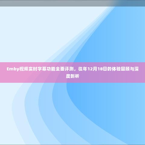 随着数字化时代的到来,流媒体服务已成为人们日常生活中不可或缺的一部分,在众多视频服务平台中,Emby以其强大的个性化功能和出色的用户体验脱颖而出,本文将围绕Emby视频实时字幕功能,特别是往年12月18日的版本更新,进行全面的评测介绍,涵盖产品特性、使用体验、与竞品对比、优点与缺点以及目标用户群体分析。