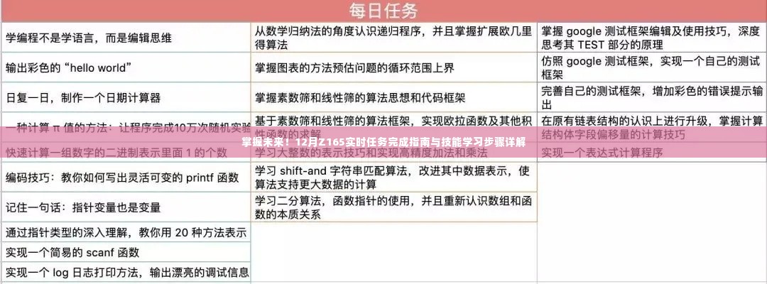 通过本文的指南,希望读者能够顺利掌握“12月Z165实时任务”的完成方法和相关技能学习方法,无论你是初学者还是进阶用户,都能从中受益,努力实践,不断提升,让我们一起迎接未来的挑战!