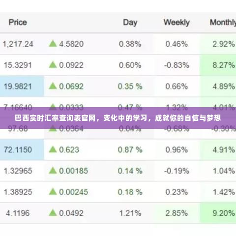 在这个充满机遇与挑战的时代,变化无处不在,学习如何适应变化,掌握新知识,是我们走向成功的必经之路,巴西实时汇率查询表官网就像一本生动的教科书,向我们展示了如何在变化中找到自我,如何在挑战中不断成长。