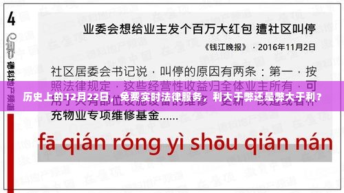 随着科技的进步和社会的发展,法律服务逐渐走向数字化和智能化,历史上的某个12月22日,免费实时法律服务崭露头角,这一创新模式引发了社会各界的广泛关注与热议,免费实时法律服务究竟是为了什么?它带来的利与弊又该如何权衡?本文将就此展开讨论,试图分析正反双方观点,并提出个人的立场及理由。