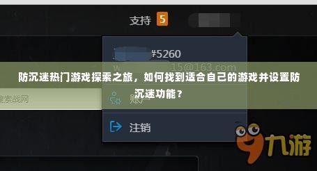 随着科技的快速发展,电子游戏已成为许多人生活中不可或缺的一部分,对于许多年轻人来说,如何合理管理游戏时间以避免沉迷成为了一个重要的问题,本指南旨在帮助初学者和进阶用户了解如何寻找防沉迷的热门游戏以及如何设置相关功能,以平衡游戏与生活的关系。