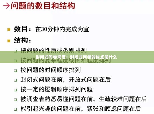 封闭式问卷作为一种有效的调查工具,在数据收集过程中发挥着重要作用。遵循以上规范,有助于提高问卷的质量和可靠性,为研究提供准确、有价值的数据支持。