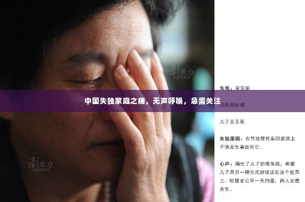 失独家庭是中国社会转型期间的一个特殊群体,他们承受着巨大的心理压力和生活困境,通过“中国失独家庭图片”,我们可以更加直观地了解他们的现状和困境,唤起公众对这一群体的关注和关爱,让我们共同努力,为失独家庭送去关爱和希望,让他们感受到社会的温暖和力量。