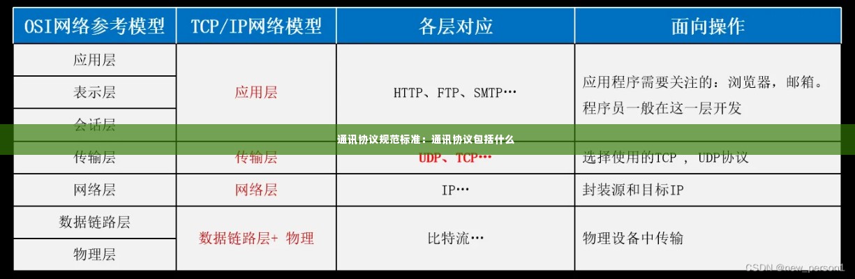 TCP/IP协议族:这是互联网最基础的通讯协议,包括传输控制协议(TCP)和互联网协议(IP),用于确保数据在网络中的可靠传输。