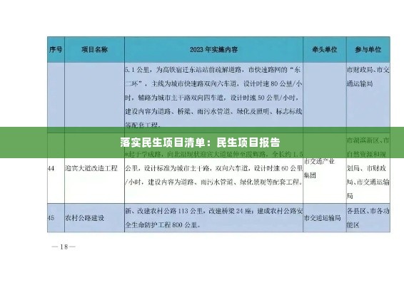 落实民生项目清单是政府履行职责、服务人民的重要举措。在新的发展阶段,我们要继续加大民生项目投入,提高项目实施质量,让人民群众共享改革发展成果,为实现全面建设社会主义现代化国家的目标奠定坚实基础。
