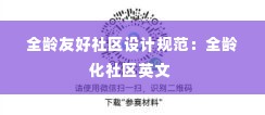 转载请注明来自天津锦麟商贸有限公司,本文标题:《全龄友好社区设计规范:全龄化社区英文 》