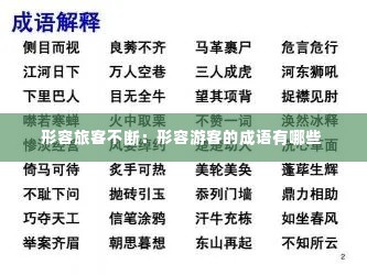 转载请注明来自天津锦麟商贸有限公司,本文标题:《形容旅客不断:形容游客的成语有哪些 》