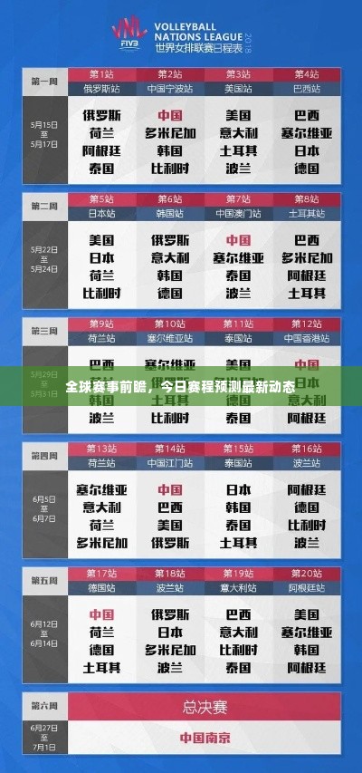 随着全球化的发展,世界各地的体育赛事日益受到人们的关注,本文将根据最新的信息,对今日的世界赛程进行预测。