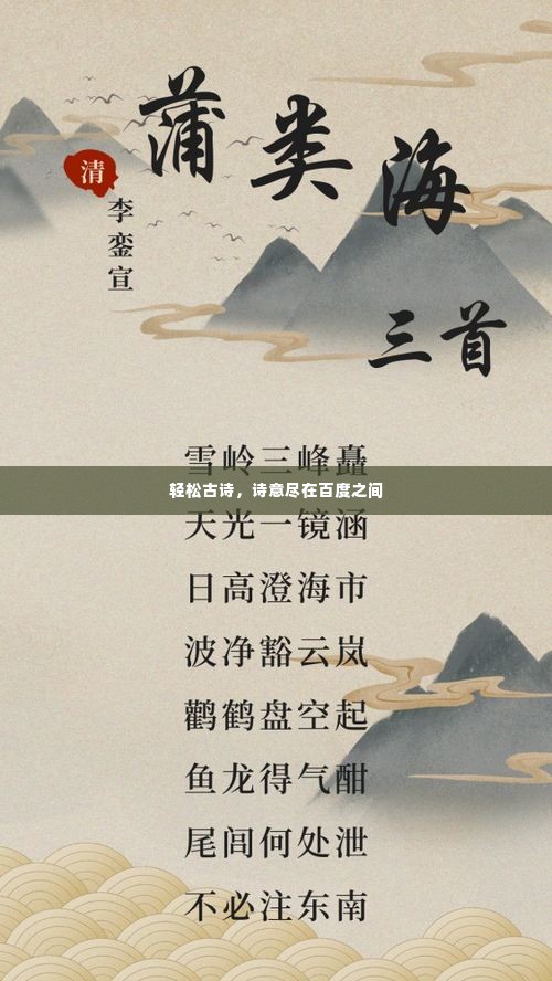 随着科技的发展,我们已经可以轻松地通过百度等搜索引擎找到那些令人心旷神怡的古诗,只需在搜索框中输入“轻松的古诗”,便可获得大量的结果,这些古诗,有的来源于课本,有的来源于网络,还有的出自古代典籍,无论是哪一种,都能让我们感受到古诗的魅力。