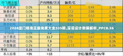 通过《2024澳门精准正版免费大全335期深层设计数据解析_PPC8.36》的实施,将有助于提升澳门地区各单位在数据解析方面的能力,推动决策科学化、精准化,为实现澳门社会经济的可持续发展贡献力量。