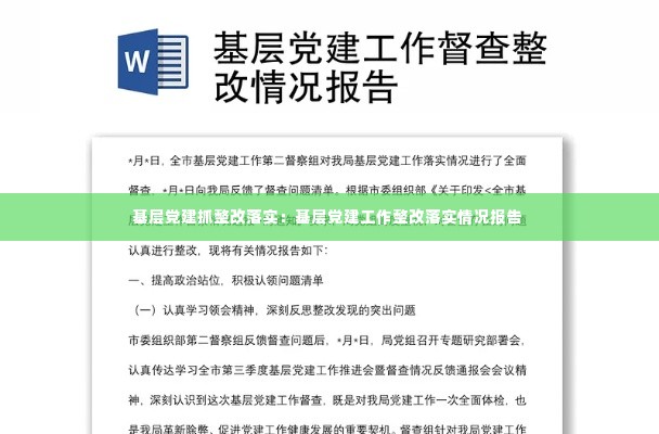 基层党建工作是党的全部工作和战斗力的基础,关系到党的执政地位和执政能力。近年来,随着全面从严治党向纵深发展,基层党建工作的重要性日益凸显。然而,在一些地方和单位,基层党建工作还存在一些问题,如组织生活不健全、党员教育管理不到位、党建工作与业务工作脱节等。为了加强基层党建工作,推动整改落实,本文将从以下几个方面进行探讨。