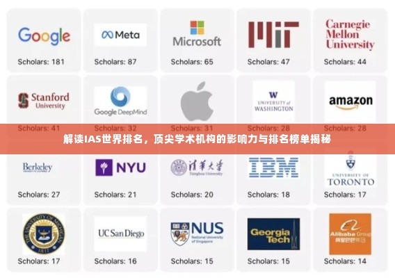 全球顶尖学术机构的排名,通常依据多个因素综合评估得出,这些包括研究成果、师资力量、学术声誉、国际合作等,在这些排名中,IAS往往位列前茅,展现了其在全球学术领域的重要地位。