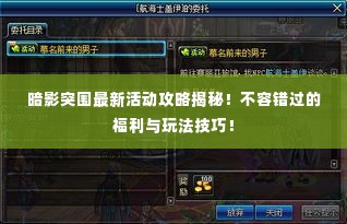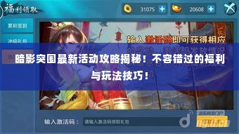 转载请注明来自天津锦麟商贸有限公司,本文标题:《暗影突围最新活动攻略揭秘!不容错过的福利与玩法技巧!》