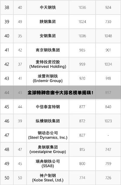 特种合金因其独特的物理、化学性能,被广泛应用于航空、航天、化工、医疗等领域,以下是世界特种合金排名前十名,这些合金因其出色的性能和广泛的应用领域而备受瞩目。