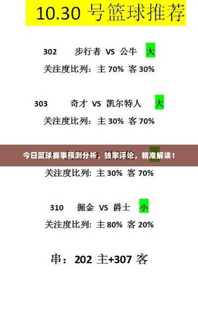 今日篮球预测评论最新内容为我们带来了更多的期待与悬念,从赛事前瞻到球队实力分析,从球员状态到比赛预测,每一个环节都充满了激情与热血,让我们共同关注这场焦点之战,感受篮球的魅力与激情。